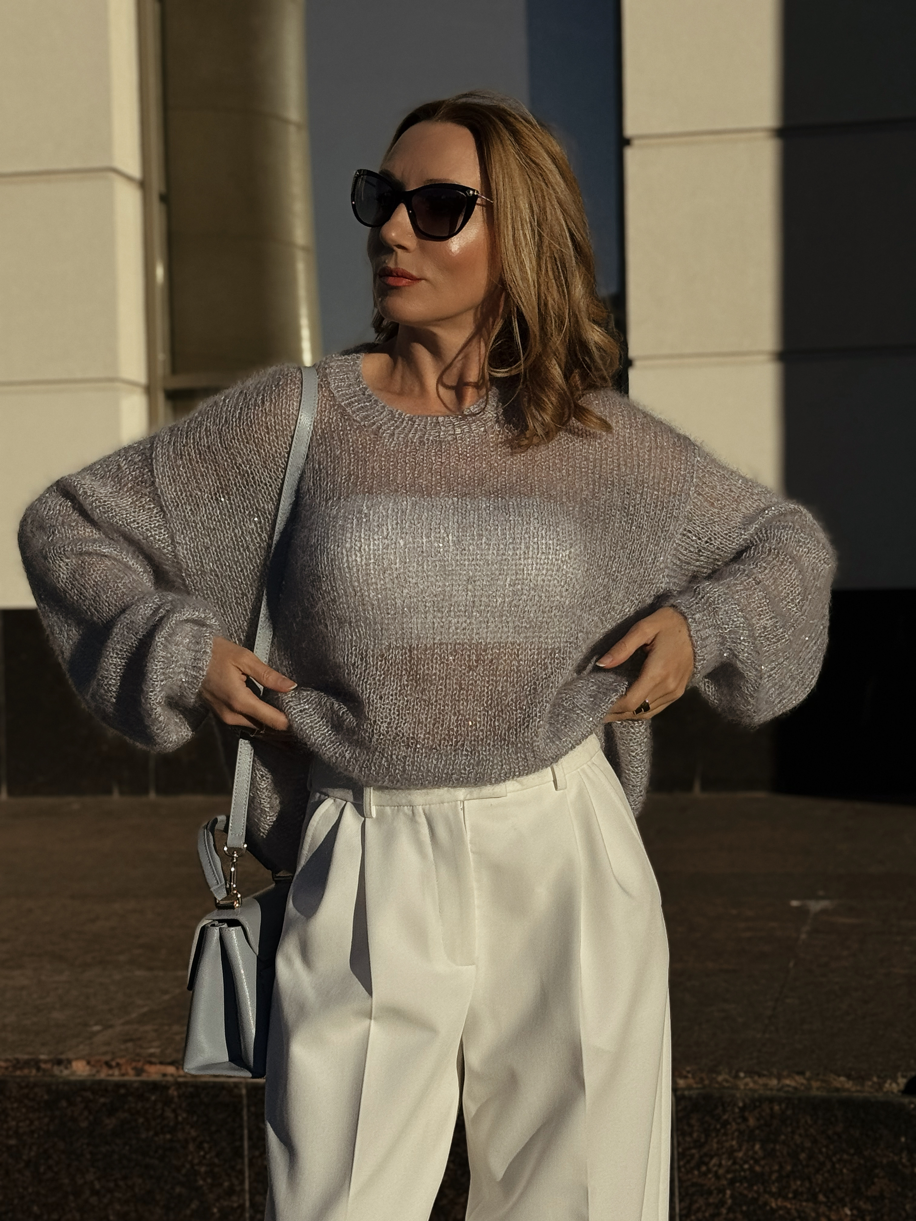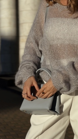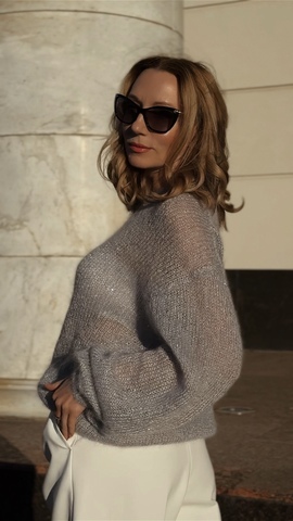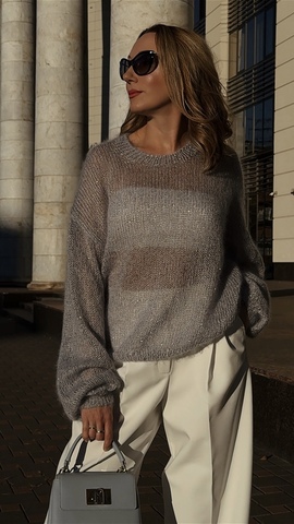 СЕРЫЙ С ПАЙЕТКАМИ ДЖМЕПЕР (на фото размер 46-48) вяжется двумя видами пряжи